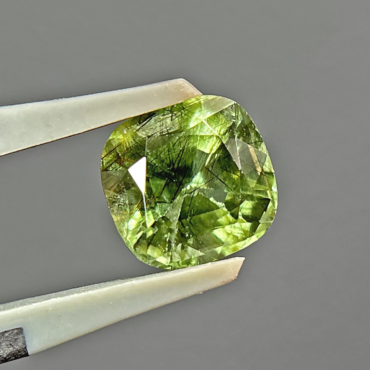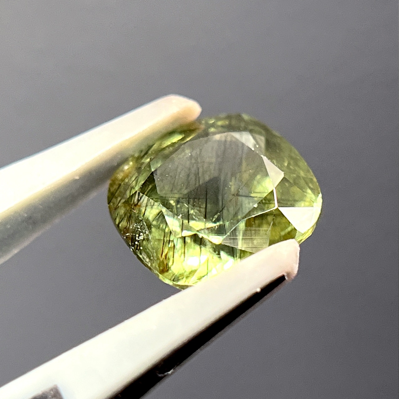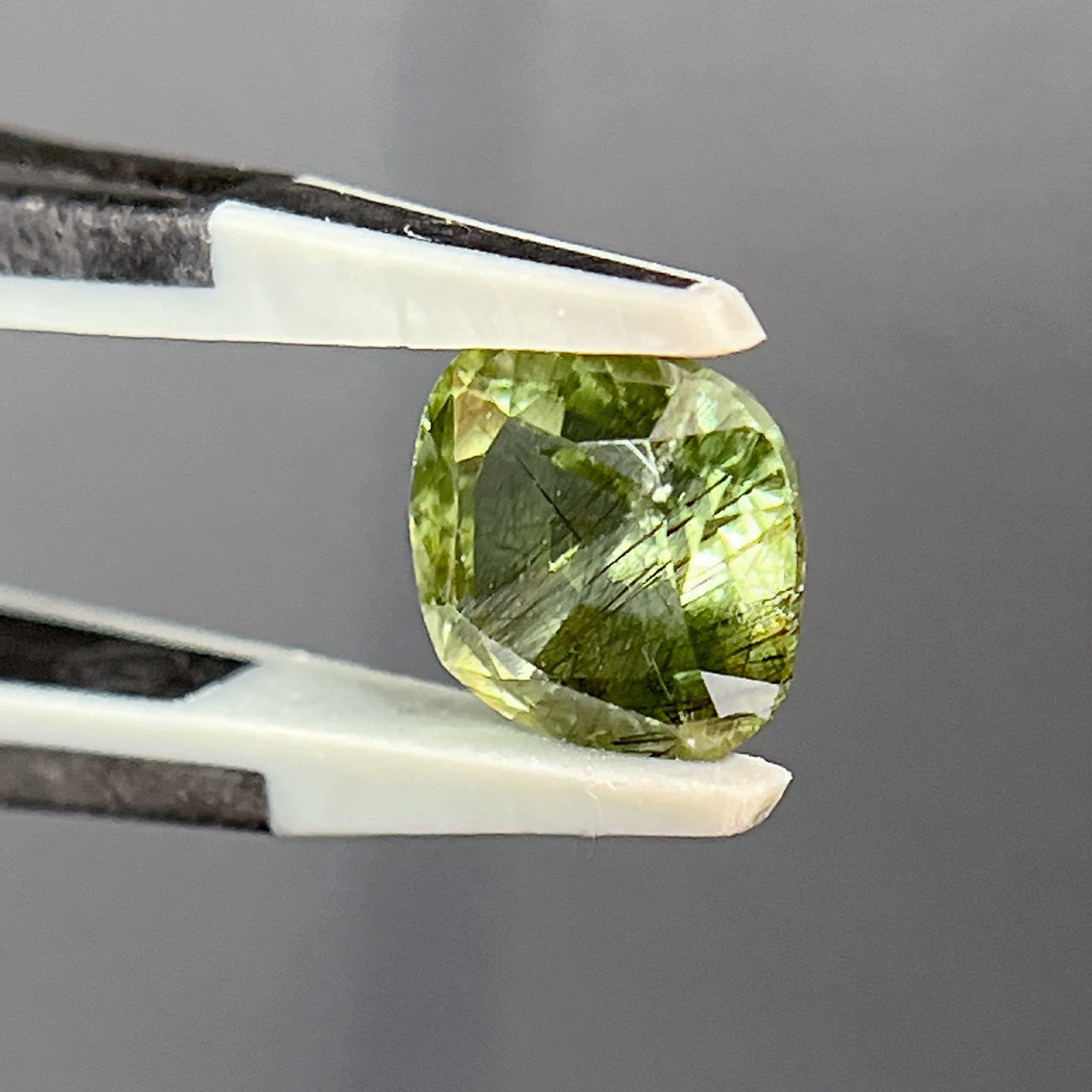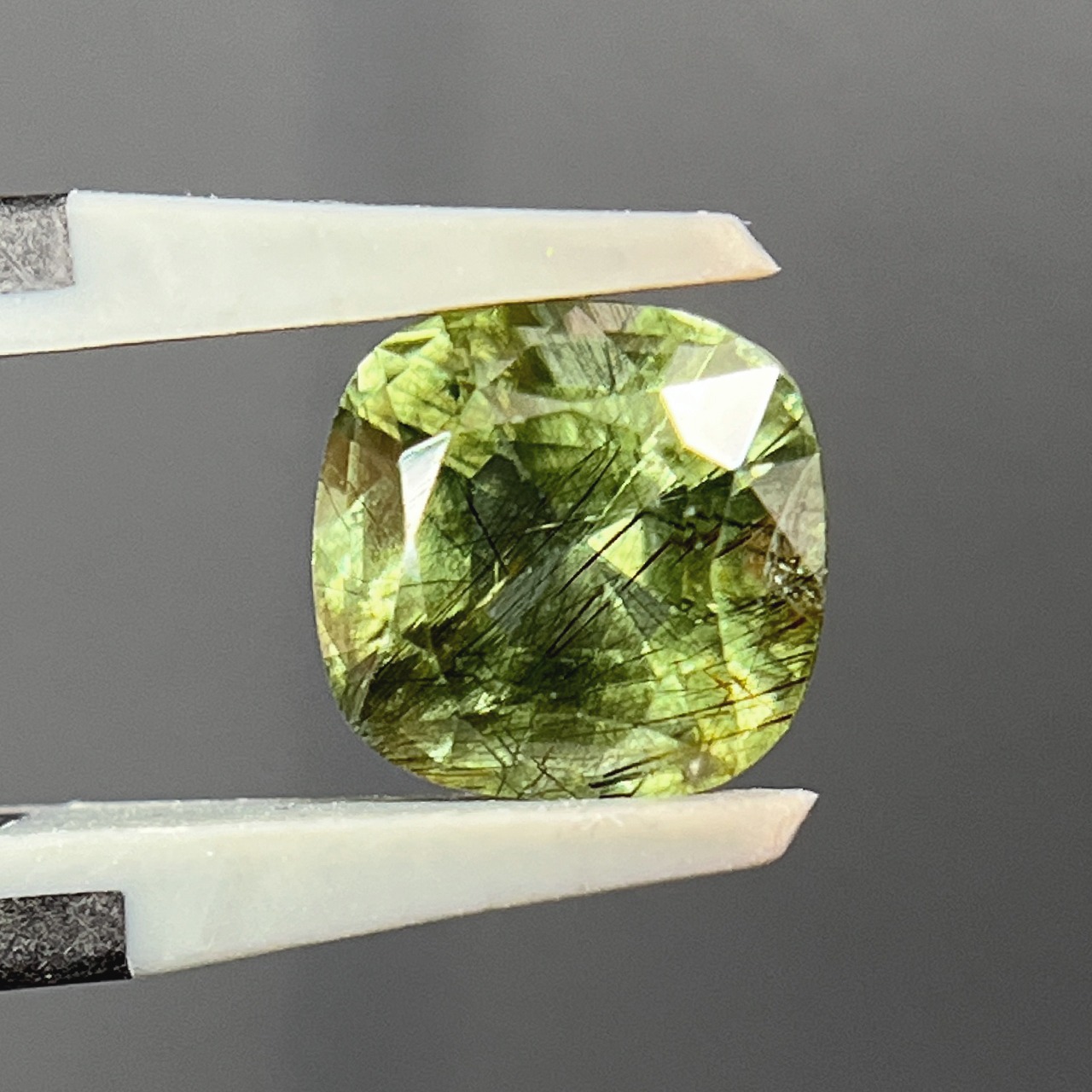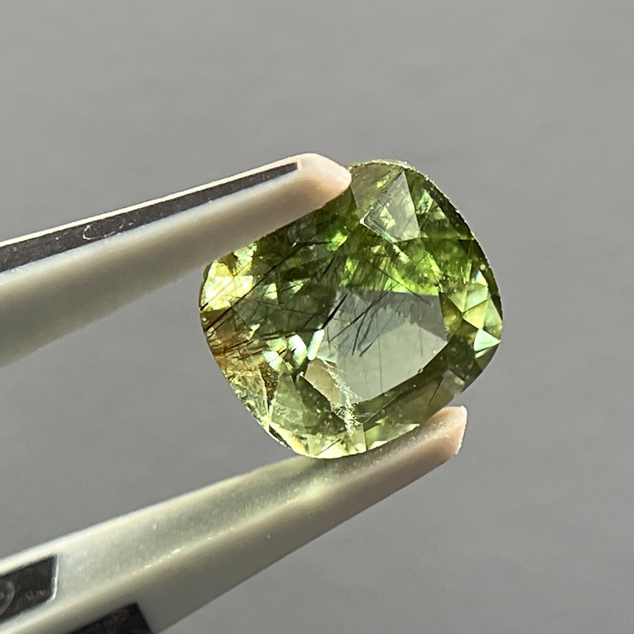 ルチルペリドット 2.95ct クッションカット ミックスカット ルース 裸石